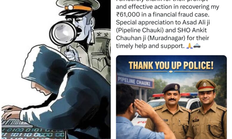 शिकायत मिलते ही मुरादनगर थाना प्रभारी (SHO) अंकित चौहान के निर्देश में पाइपलाइन चौकी प्रभारी असद अली ने मामले की गंभीरता को देखते हुए तकनीकी टीम के साथ मिलकर कार्रवाई शुरू की। पुलिस के प्रभावी हस्तक्षेप के कारण फ्रॉड की गई पूरी राशि सुरक्षित रिकवर कर ली गई।