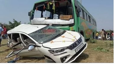 हाइवे पर बस ने मारी टक्कर, कार को घसीटते हुए ले गया ड्राइवर, मासूम समेत छह लोग घायल